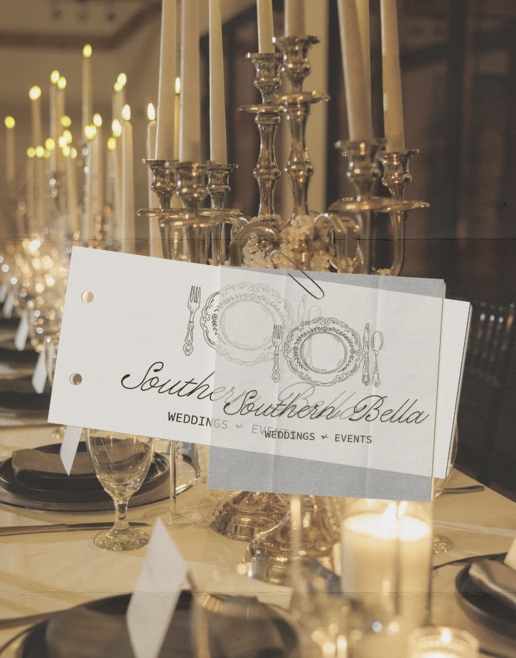 Southern Bella Events needed a brand that felt elegant, feminine, and rooted in southern charm. The identity blends vintage-inspired typography with hand-drawn elements to create a look that feels timeless yet personal. A custom motif featuring a horse and martini glass became a signature detail throughout the brand, reflecting both the story behind the business and the elevated, celebratory nature of their events.